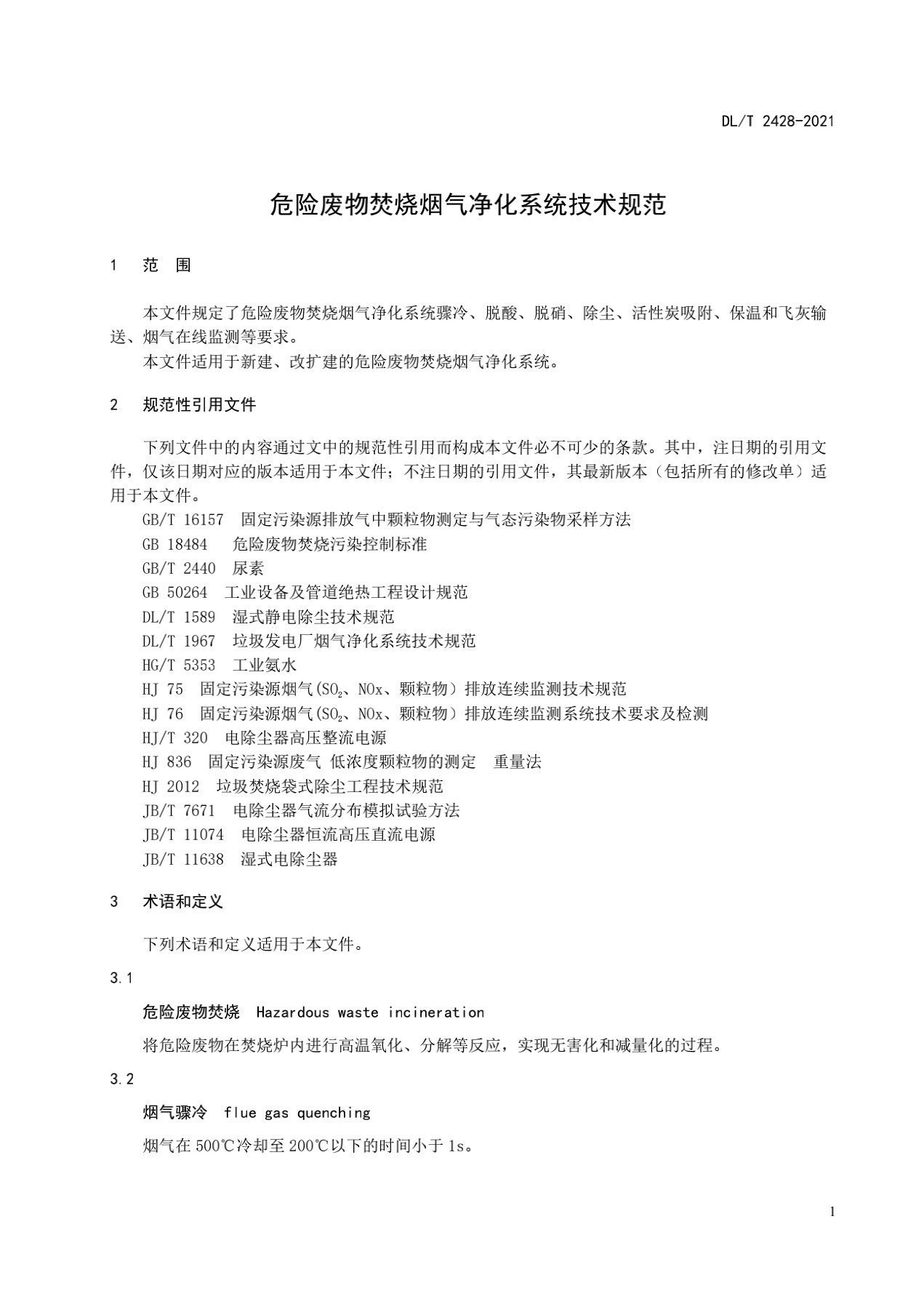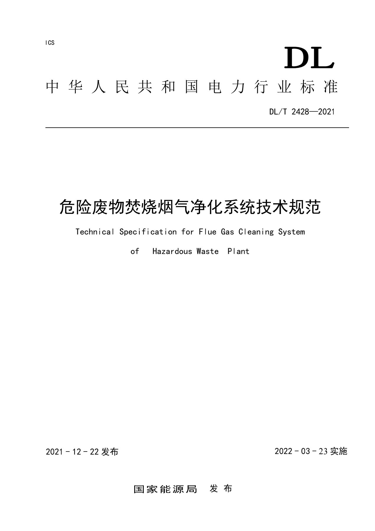 《危險廢物焚燒煙氣凈化系統技術規范》