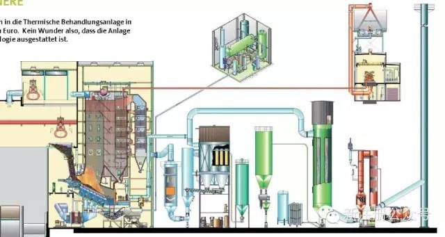 此工廠為奧地利能源2004年幫助建設(shè)投產(chǎn)的一個焚燒廠,是歐洲棄用濕法洗滌而改用更為先進的湍流吸收工藝(國內(nèi)稱為循環(huán)流化床工藝)來完成脫酸。該廠的工藝為:急冷塔+湍流吸收工藝+活性炭吸附+SCR觸媒反應(yīng)。