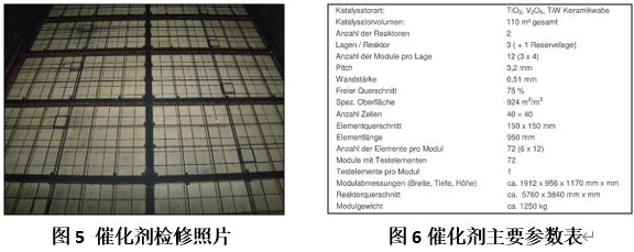 回國后,從該廠提供的催化劑檢修照片來看其運行狀態(tài)良好,詳見圖5。而其催化劑則是采用了主流的釩鈦基40孔的蜂窩式催化劑,3+1層布置方式,詳見圖6。
