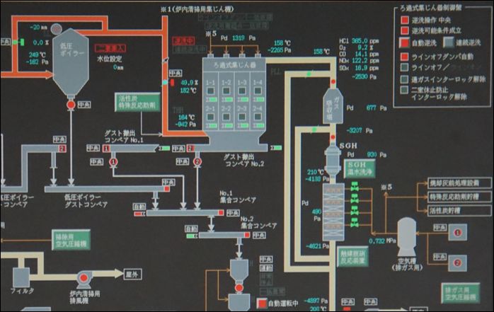 從上圖表來看,該項目的設計指標屬于日本目前最嚴格的地方排放標準,而中國目前個別地區(qū)的污染物排放要求則更為嚴格,如華星東方設計和建設的:寧波鄞州、青島黃島、浙江海寧等焚燒廠的煙氣凈化系統(tǒng),其NOx設計排放標準都低于上述排放標準,但日本實際運行煙氣系統(tǒng)時則投入更多藥劑,排放更貼近零排放,不少筆者參觀的焚燒廠除了NOx排放控制在30-40ppm,約70mg/Nm3外,其余污染物指標均小于1ppm運行。