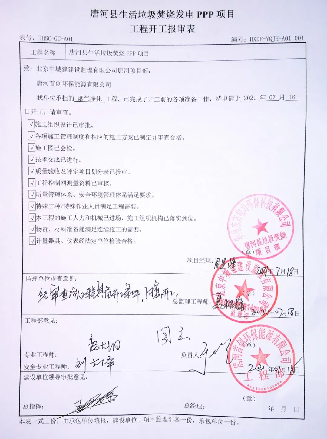 我公司承建的河南省唐河縣生活垃圾焚燒發電PPP項目煙氣凈化工程于2021年7月18日開工建設,目前正在建設反應塔。