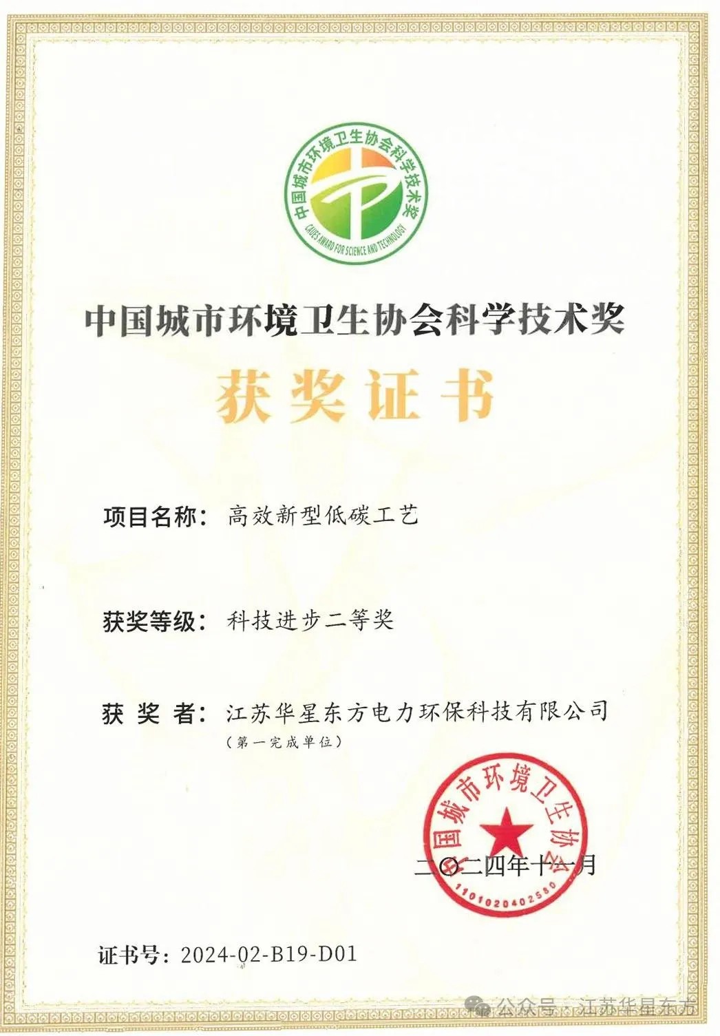 2024年11月10日,由中國城市環境衛生協會主辦的2024中國環境衛生博覽會在北京國際展覽中心盛大開幕。來自全國環衛系統各級主管部門、國家級相關行業協會、各省級環衛協(學)會的有關負責人,以及有關高校、科研院所、環衛企事業單位的代表約3000余人參加,共襄這場環衛行業的年度盛舉。在中國城市環境衛生協會科學技術獎頒獎大會中,江蘇華星東方環保科技有限公司“HTCD高效新型低碳工藝”榮獲科技進步二等獎。( High-Efficiency Trailblazing Carbon-reducing Design 高效新型低碳工藝 簡稱“HTCD” ) The 2024 China Environmental Health Expo is hosted by China Urban Environmental Health Association at Beijing International Exhibition Center on Nov 10th. More than 3,000 people from the competent departments of the national environmental sanitation system at all levels, the national relevant industry associations, the relevant responsible personnels of the provincial environmental health association (institute), as well as representatives of relevant universities, scientific research institutes, environmental health enterprises and institutions have participated in this annual celebration of the environmental sanitation industry. In the Science and Technology Award ceremony of China Urban Environmental Health Association, HEPT has won the second prize of science and Technology Progress for "HTCD Efficient New low-carbon process". (High-Efficiency Trailblazing Carbon-reducing Design)