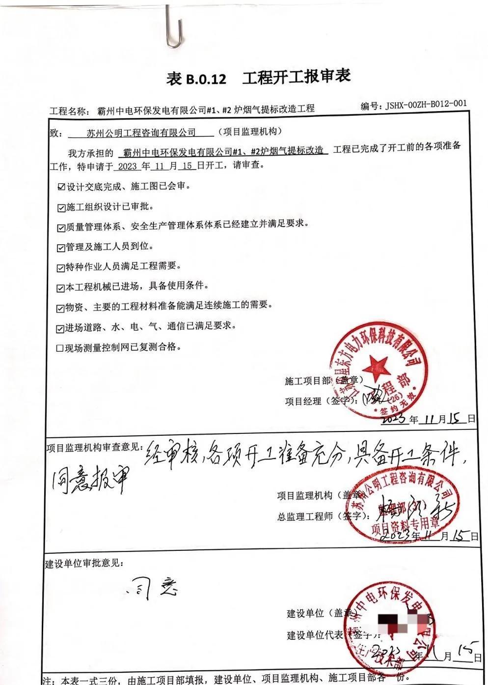The flue gas cleaning system standard improvement and renovation project of the Bazhou domestic waste incineration power generation project in Langfang City, Hebei Province, undertaken by our company, started the construction phase on November 15, 2023.
