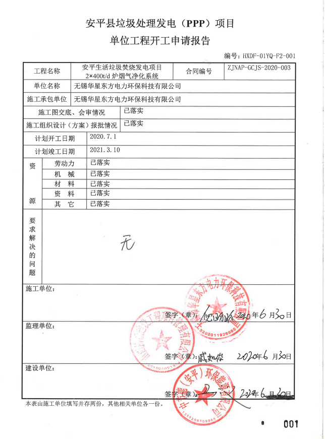 The FGC project undertaken by Huaxing for Anping Waste-to-Energy plant in  Hengshui, Heibei Province  was commenced on July 01, 2020.