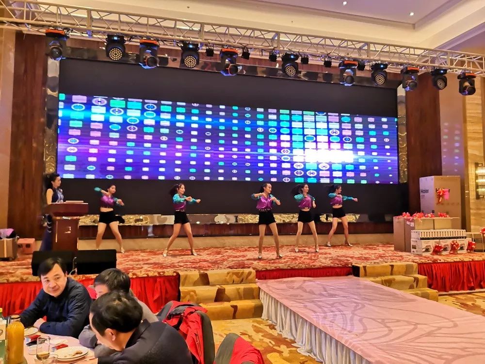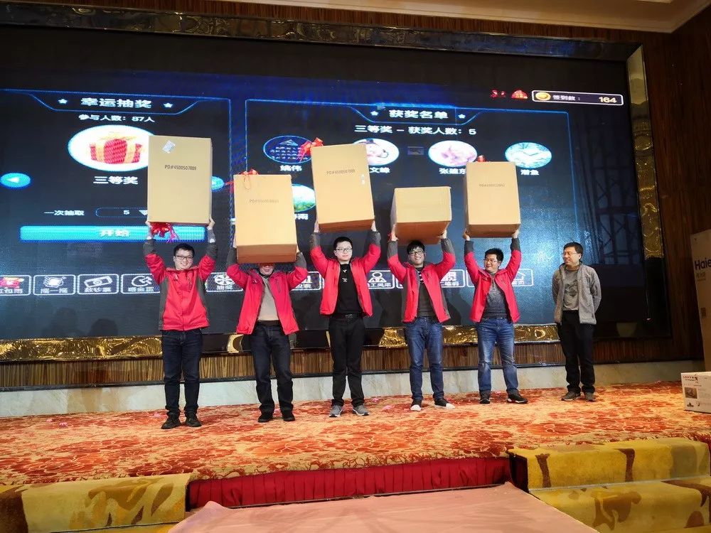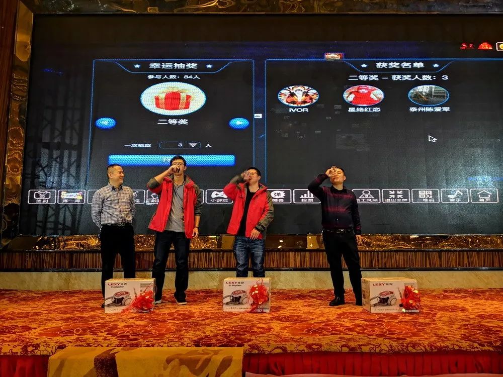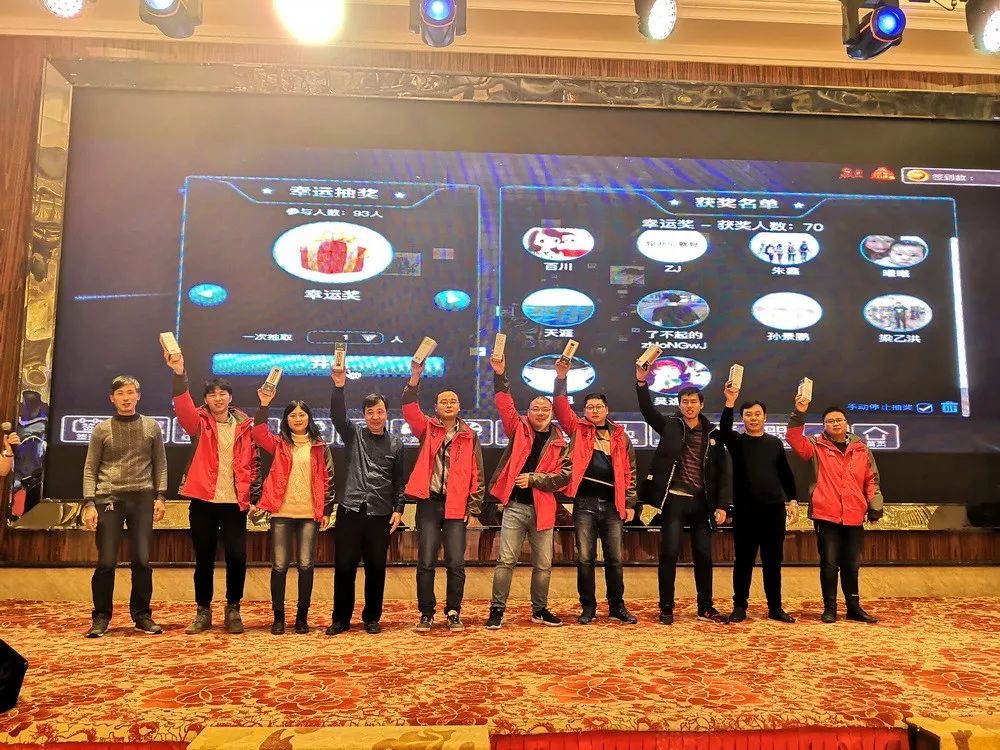 晚宴和年會抽獎環節始終是另一種“萬眾矚目”。觥籌交錯中,推杯換盞間,聊的是家常事,談的是同事情。晚宴同時穿插的年會節目也是一場接著一場,互動游戲、熱舞、獨唱、中國舞、大咖模仿秀等等。抽獎環節更是掌聲與歡呼聲此起彼伏,高潮迭起。 The dinner party and prize-drawing are always another two major public attentions in the celebration. In the process of drinking and toasting, family affairs would be chatted and colleagues’ feelings would be exchanged . The annual meeting performances such as interactive games, hot dance, solo, Chinese dance, biggie imitation show,etc were performed alternately in the dinner party. Furthermore,the prize-drawing has won more applause and cheers with one climax emerging after another.
