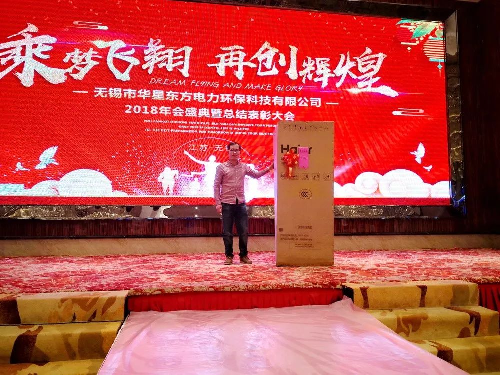 華星東方總部、無錫、泰州、膠州等各地分支機構及生產制造中心工作人員和代表歡聚一堂,共聊今昔,但仍有部分職工堅守在全國各地的工程崗位上。年會盛典在一場紅火的水鼓舞中拉開序幕。富有韻律的鼓聲陣陣,猶如激昂奮發的青春,華星人邁著整齊劃一的堅定步伐,走過了勵精圖治的2018年。 The working staff and representatives of HXET Headquarters, other branches and manufacturing centers in the cities of Wuxi, Taizhou and Jiaozhou,etc gathered together to chat about the past and the present. However, there were still some employees who continued to work at their engineering posts all over the country. The annual meeting celebration was kicked off with a lively performance of water drum dance featuring rhythmic drum sounds which represented the passionate youth owned by the whole staff of HXET who paid every effort to successfully make the company prosperous in the year 2018 by sticking to a uniform and firm target.