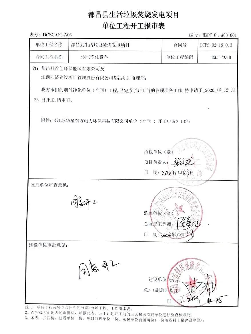 我公司承建的江西省九江市都昌縣生活垃圾焚燒發(fā)電項目煙氣凈化工程于2020年12月25日開工建設(shè),現(xiàn)已進入主體安裝環(huán)節(jié)。