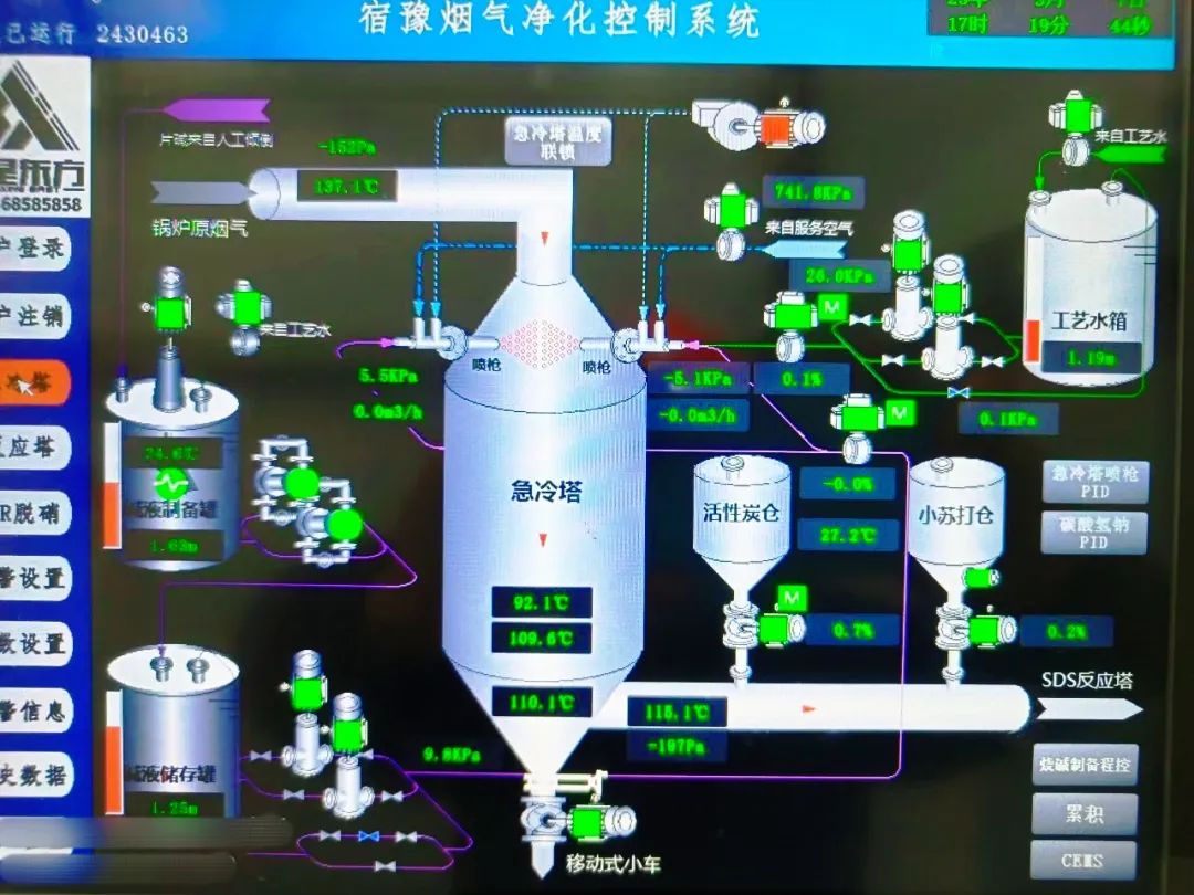 該項目煙氣處理采用“換熱器匯總煙氣+急冷脫酸塔+SDS小蘇打脫硫+陶瓷過濾除塵器+SCR脫硝+脫硫脫硝引風機(甲方供貨我司安裝)”的煙氣凈化工藝,為我司EPC工程。此次項目的煙氣凈化系統使用了由江蘇華星東方自主研發的陶瓷濾筒、低溫催化二噁英分解和小蘇打干法應用等全新工藝。 The plant FGC applied the process of "heat exchanger gas-collection + quench reaction tower + SDS sodium bicarbonate desulfurization + ceramic filter + SCR denitrification + ID fan". It is an EPC project of Huaxing. The FGC system applied new technologies such as ceramic filter cartridge, low-temperature catalytic decomposition of dioxins, and sodium bicarbonate dry process, which are independently developed by Huaxing.