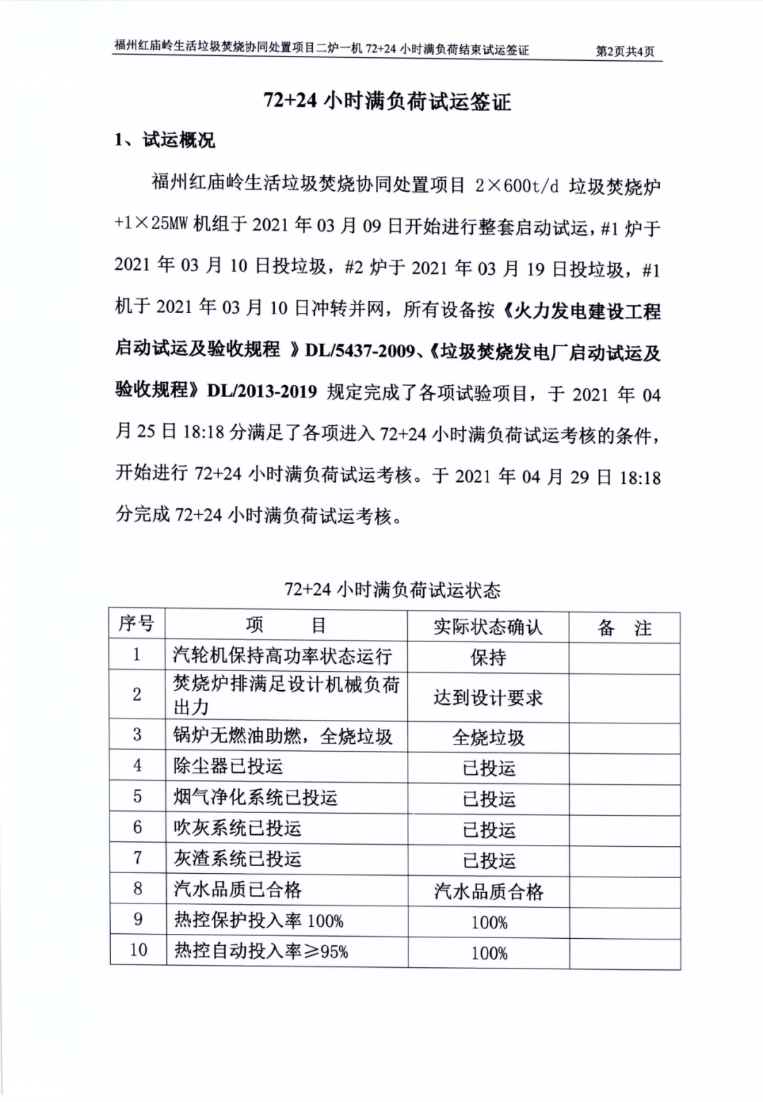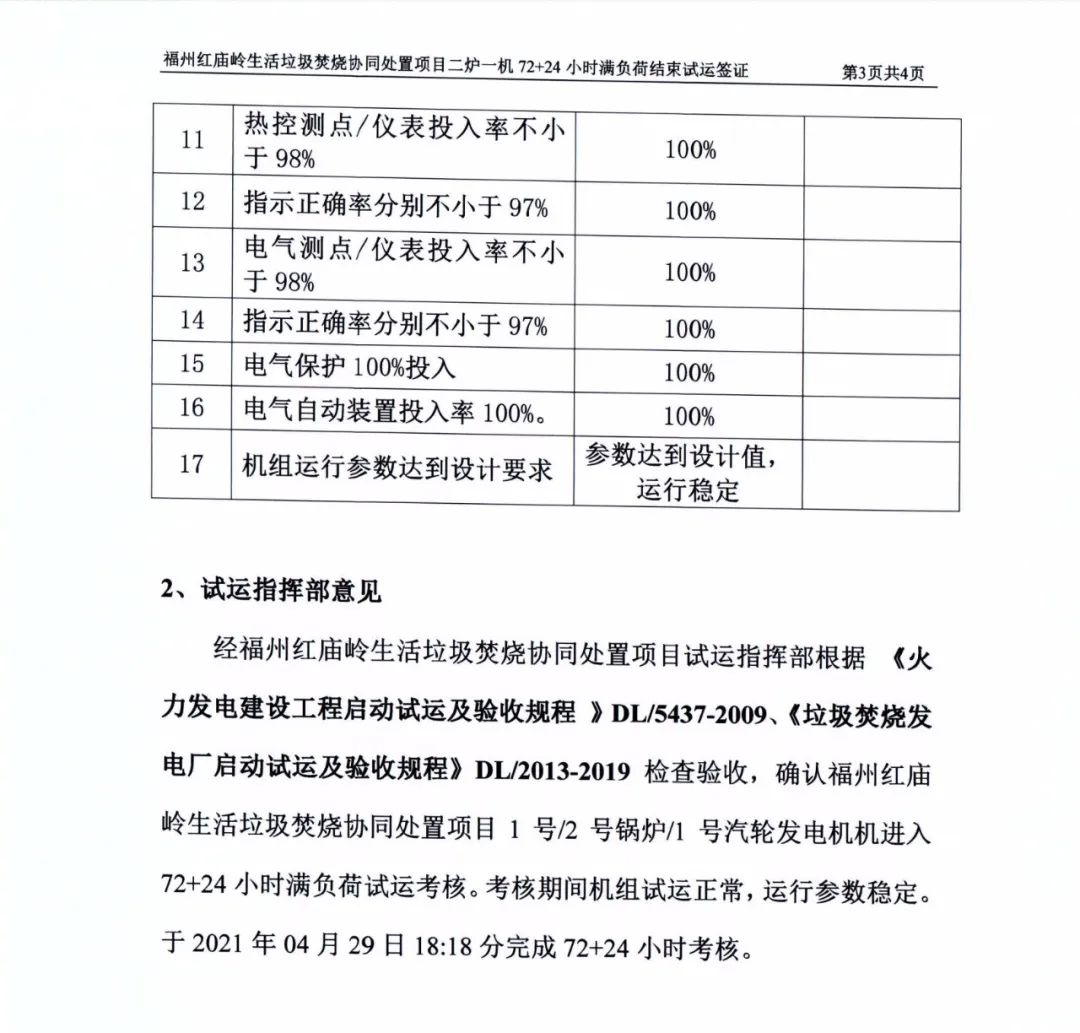 我公司承建的福建省福州市紅廟嶺生活垃圾焚燒發電項目煙氣凈化工程于2021年04月29日通過72+24小時試運行。 The flue gas cleaning (FGC) project undertaken by Huaxing-east for Hongmiaoling waste incineration power plant in Fuzhou, Fujian passed 72+24 hours trial operation on April 29, 2021.
