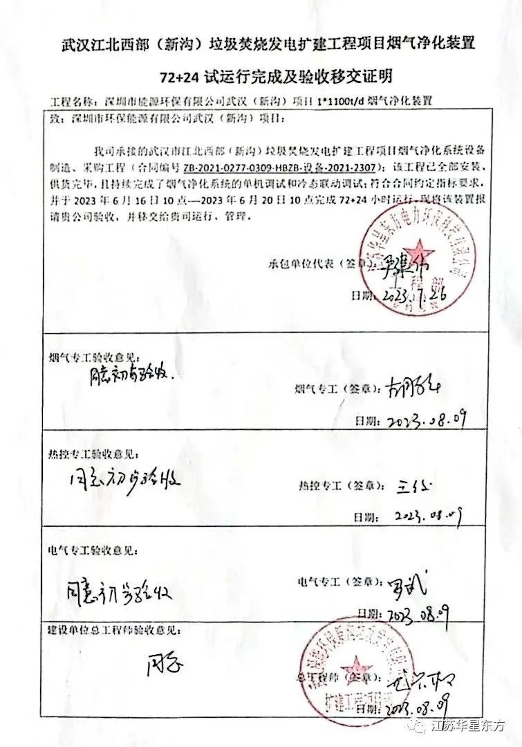 我公司承建的武漢市江北西部(新溝)垃圾焚燒發(fā)電項目煙氣凈化擴(kuò)建工程于2023年06月20日通過72+24小時試運(yùn)行。 The flue gas cleaning expansion project of Wuhan Jiangbei West (Xingou) Waste Incineration Power Generation Project undertaken by our company passed the 72+24 hour trial operation on June 20, 2023.